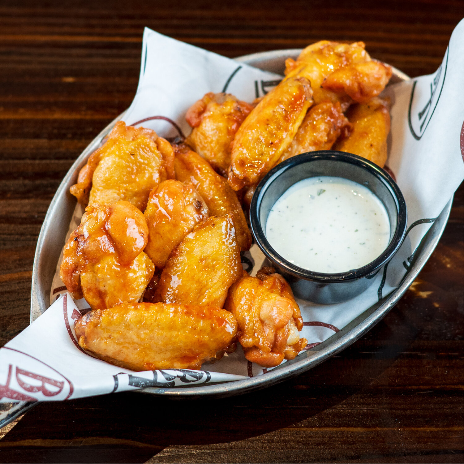 Twelve bone-in chicken wings, chipotle-Buffalo sauce or honey sriracha sauce, fries, 16 oz. Coors Banquet or soft drink